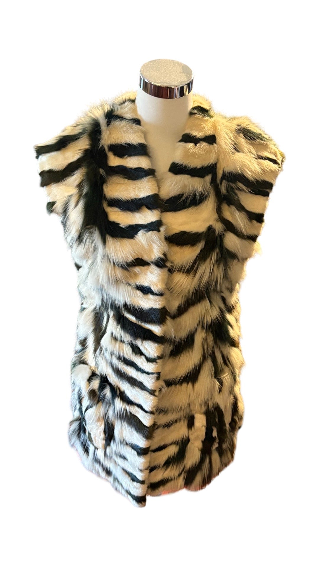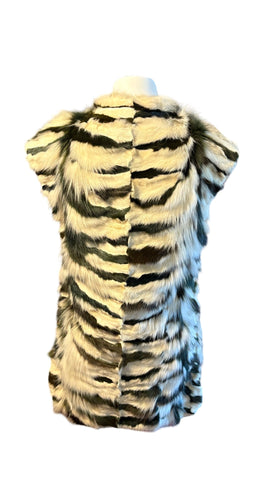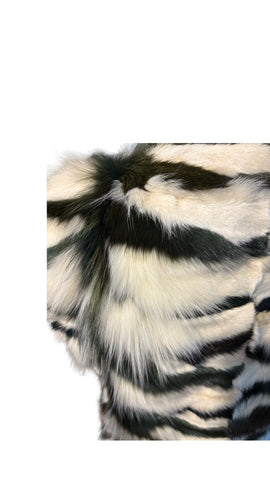 Pelzgilet von Pelze Fröhlich in Zebra Optik. Das Gilet besticht durch seine außergewöhnliche Optik in dunkelgrün und weiß. Definitiv ein Hingucker. Es passt einer Größe 34.